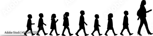 teacher, children, education, silhouette, walking, holding hands, preschool, kindergarten, school, vector, illustration, orderly, line art, group, activity, class, learning, teaching, care, childhood, friendship, support, guidance, connection, trust, togetherness, assistance, leader, following, discipline, development, growing, black-and-white, simple, graphic, design, creative, uniform, student, primary, elementary, motherhood, woman, girl, boy