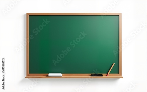 Teacher day concept with green board, chalkboard, and eraser isolated on a white background. High quality