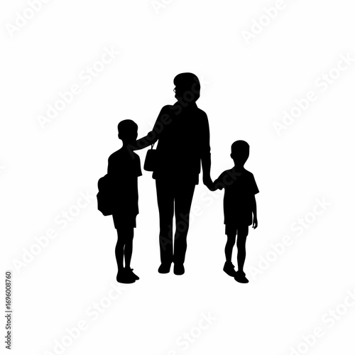 Teacher guiding students to library silhouette for education awareness