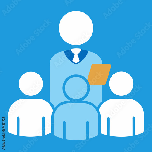 teacher, student, education, learning, school, classroom, digital, technology, tablet, icon, illustration, group, people, person, team, collaboration, meeting, presentation, training, guidance, support, modern, flat, design, graphic, vector, blue, background, white
