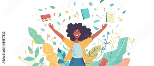 joyful, woman, celebrate, success, book, vibrant, nature, inspire, illustration, symbolize, thoughtful, cartoon, art, excitement, concept, student, guidance, uplift, kindness, heartwarming, happiness, belief, nurture, refresh, children, paint, painting, fun, boy, children, drawing, colourful, school, colours, childhood, people, brush, smile, education, artistic, party, beauty, hair, fashion, person, funny
