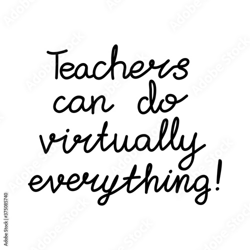 Teachers can do virtually everything. Education quote. hildish handwriting. Isolated on white background. Vector stock illustration.