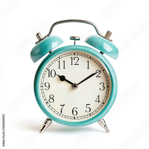 clock, alarm, teal, turquoise, time, vintage, retro, analog, metal, round, face, number, hand, ticking, minute, second, hours, wake up, morning, reminder, schedule, punctual, prompt, early, late, countdown, timer, digital, arousing, sleep, cycle, display, sound, chime, ringing, afternoon, evening, night, isolated, studio, product, shot, object, design, simple, classic, aesthetic, minimalist, modern
