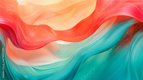 Teal and Coral Fluid Color Waves Abstract Patterns