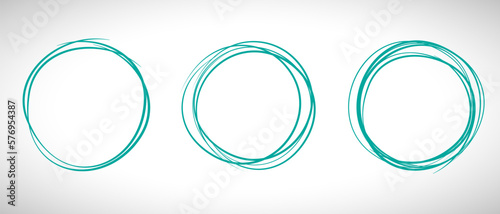 Teal circle line hand drawn set. Highlight hand drawing circle isolated on background. Round handwritten circle. For marking text, note, mark icon, number, marker pen, pencil and text check, vector