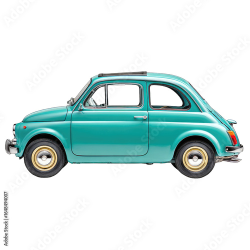 car, classic, teal, automobile, vintage, retro, vehicle, studio, shot, side, green, small, compact, italy, europa, road, travel, transport, drive, driving, speed, motion, wheel, tire, chrome, metal, paint, glossy, shiny, background, isolated, old, antique, history, heritage, design, style, iconic, transportation, journey, adventure, freedom, retrospective, nostalgia, memory, past