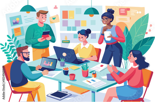Team Collaboration in a Modern Office Setting – Vector Illustration.