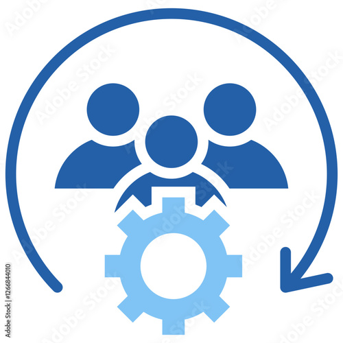 teamwork, collaboration, gear, process, people, management, workflow, business, icon, blue, glyphs