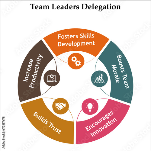 Team leaders delegation. Infographic template with icons