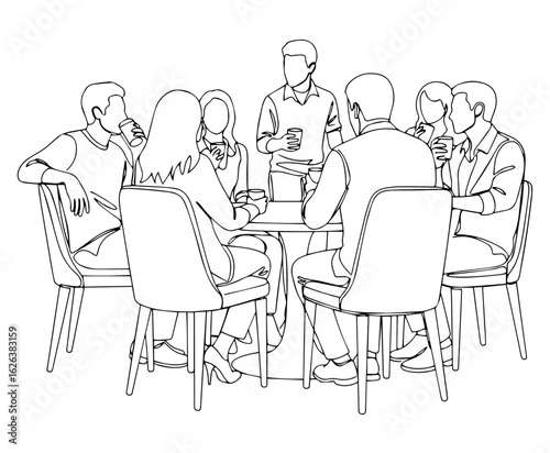 Team Meeting Illustration – Group Discussion Line Art Drawing