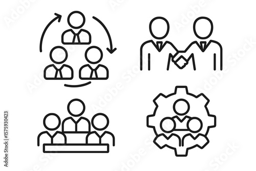 Teamwork and Business Collaboration Icons Set. Line Style Web Icons for Team Management, Partnership, Synergy, Interaction, Office Cooperation, Leadership, Organization, Communication