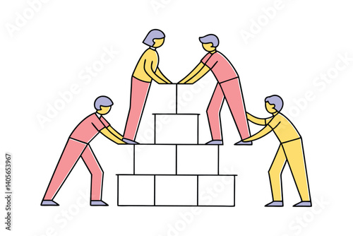 teamwork, collaboration, building, project, construction, effort, vector, illustration, people, team, success, corporate, cooperation, together, business, achievement, community, support, outline, cartoon, flat, minimal, design, concept, group, strategy, growth
