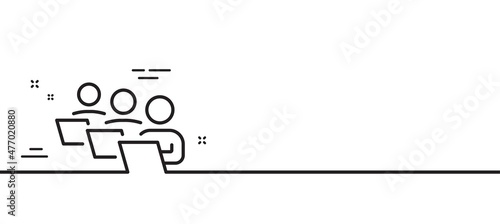 Teamwork line icon. Remote office sign. Team employees symbol. Minimal line illustration background. Teamwork line icon pattern banner. White web template concept. Vector