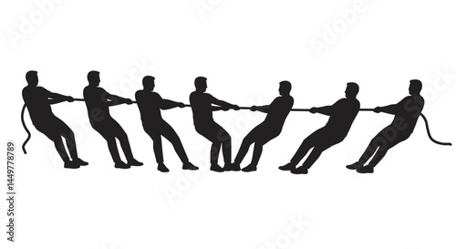 Teamwork, Tug of War Silhouette Illustration Strength, Collaboration, and Competition