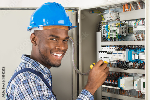 work, checking, check, electrician, box, fuse, voltage, technician, cable, engineer, men at work, screwdriver, african, electric, american, appliance, circuit, man, testing, black
