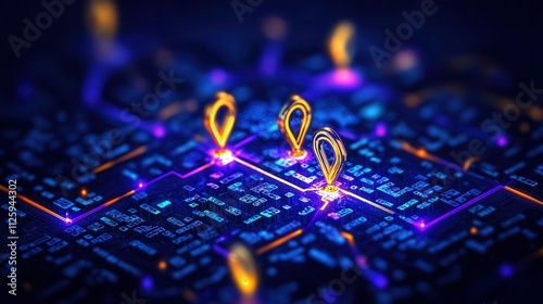 Technological advancements in navigation systems digital space infographic representation dark theme abstract conceptualization