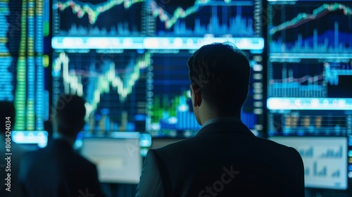 Technology Concept: Data analyst and chartist analyzing market data