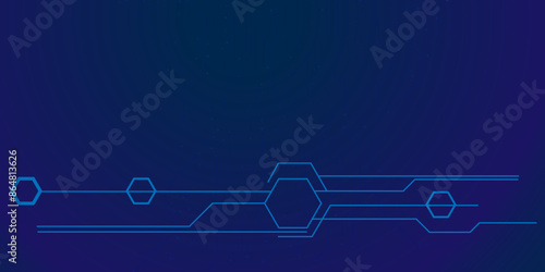 Technology connected blue lines with electronics elements on tech bg. Circuit connected lines and dots on abstract motherboard.