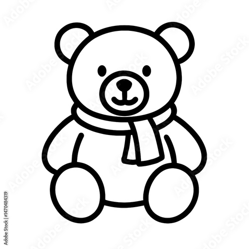 bear, toy, cartoon, illustration, vector, outline, doodle, vignetting, simple, cute, children, children, sitting, foulard, character, icon, symbol, graphic, plain, clean, silhouette, plaything, stuffed, soft, furry, hug, adorable, friends, pet, contour, classic, plush, clothing, design, object