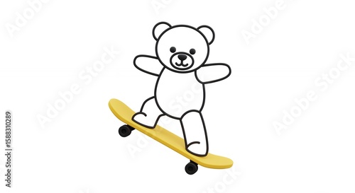 teddy bear, skateboarding, skateboard, bear, toy, leisure, hobby, children, illustration, line art, outline, white, yellow, simple, minimalist, cartoon, playful, activity, isolated, sport, fun, cute, childlike, design, graphic, vector, image, clip art, digital artwork, graphic design, children, entertainment, pastime, drawing, artwork, poster, print