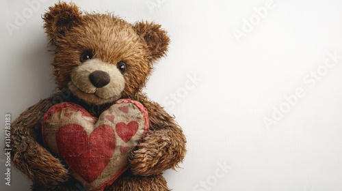Teddy Bear with Heart-Shaped Pillow Isolated Against a Plain Background for Cozy and Cute Home Decor Concepts