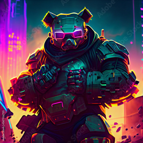 Tedy Bear Robot Wearing VR Glasses Cyberpunk Style. Generative Ai