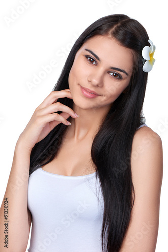 adult, beautiful, beauty, brunette, care, caucasian, charming, clean, complexion, cosmetic, female, femininity, flower, fresh, freshness, girl, happiness, happy, health, healthy, isolated, lady, looking, natural, people, honed, person, plumeria, portrait, pretty, relax, relaxation, romance, romantic, skin, skincare, smile, spa, stroking, studio, teenage, teenage, touch, treatment, vertical, wellness, white background, woman, young, youth