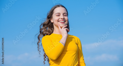 smile, girl, teenage, skincare, face, portrait, happy, youth, sky background, smiling, express, cheerful, positive, happiness, glad, gladness, joy, positivity, emotion, cheerfulness, charming, beautiful, pretty
