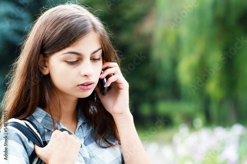 studying, backpack, chinese, horizontal, schoolgirl, happiness, college students, mobile phone, message, copy space, casual attire, people, female, portrait, cute, sad, text message, calling, girl, 16, mobile, holding, children, standing, woman, student, beauty, school, university, education, on the phone, cheerful, beautiful, academic, smile, college, phone, wireless, real people, pretty, campus, messaging, happy, communication
