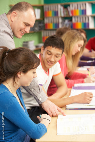 Teenage Students Studying In Classroom With Tutor