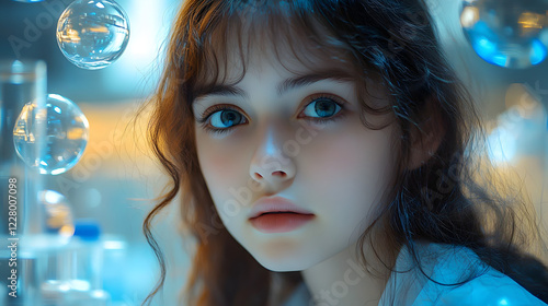 Teenager exploring dreams of invention and discovery in a science lab educational concept of hope and