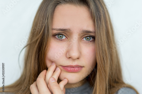 girl, portrait, clothing, blond, teenage, casual attire, people, posing, youth, woman, hair, background, camera, female, feeling, isolated, model, white, arm, studio, caucasian, fashion, cute, woman, lifestyle, young, long, beauty, background, emotion, looking, teenage, sensuality, attitude, fashionable, toothache, teeth, pain, unpleasant