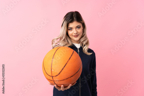 girl, woman, woman, people, person, female, studio, pretty, teenage, teenage, youth, young, russian, caucasian, colours, colourful, background, wall, isolated, pink, basketball, player, ball, sport, playing, holding, athlete, standing, practicing, healthy, lifestyle, sport, professional, training, exercise, game, leisure, hobby