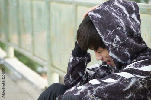 fail, cry, dismal, teenage, sad, depression, stress, boy, teenage, depressed, young, sorrowful, man, person, unhappy, people, portrait, male, homeless, stressed, lonely, anxiety, adult, problem, bad, sleepy, frustrated, experiencing, head, down, bend, sitting, alone, caucasian, loneliness, loss, problem, grieved, street, suicide, worried
