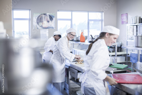 teenage, kitchen, trainee, cook, talking, student, boss, group, job