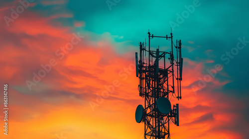 telecom, tower, sunset, sky, silhouette, vibrant, technology, communication, antennae, evening, structure, broadcast, network, radio, cellular, infrastructure, cloud, dusk, twilight, signal, industry, steel, connection, telecom, mast, outdoors, landscape, tall, sun, horizon, transmission, high, wireless, energy, engineering, equipment, scene, colourful