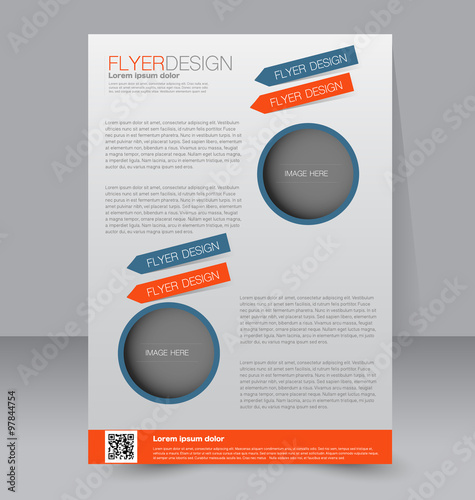 Template for brochure or flyer. Editable A4 poster for business, education, presentation, website, magazine cover. Orange and blue color.
