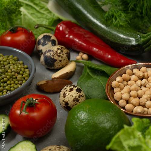 antioxidant, assortment, avocado, bean, concept, copy space, cucumber, diet food, dill, fiber, food, good health, green, lentil, lettuce, lifestyle, lime, meal, menu, nut, alimentary, organic, overhead, parsley, pepper, pistachio, red, rosemary, spinach, sprout, tomatoes, vegan, vegetable, vegetarian, vitamin, courgette