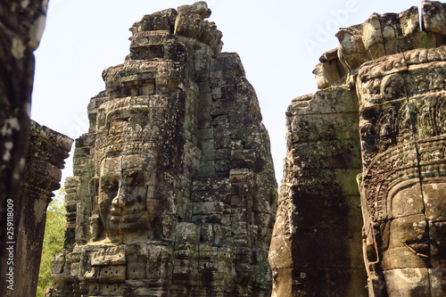 Temple d'Angkor visage monumental sculpté en