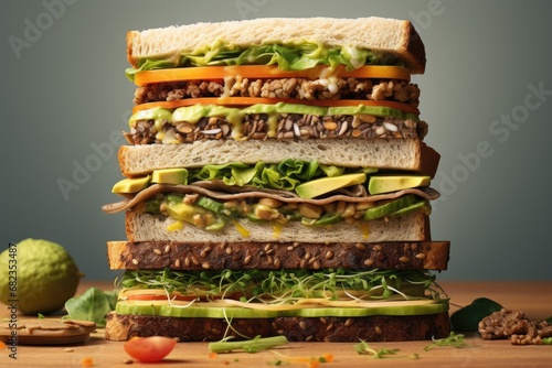 tempting, vegan, sandwich, overflowing, tasty, filling, delicious, variety, colourful, diverse, assortment, savoury, vibrant, assorted, flavorful, including
