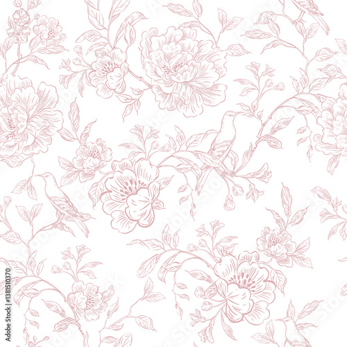 Tender Floral pink seamless pattern, Elegant Line Art Design