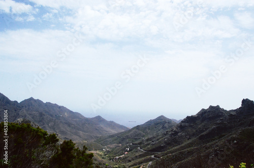 TENERIFE, SPAIN: Scenic landscape view of the Anaga natural park rocks and roads