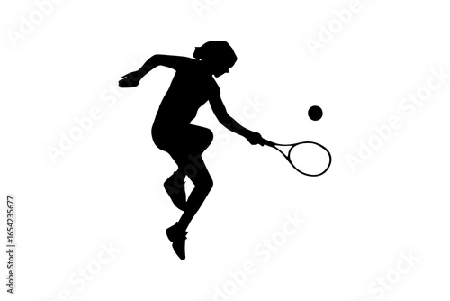 Tennis Player Silhouette Hitting Ball. vector illustration