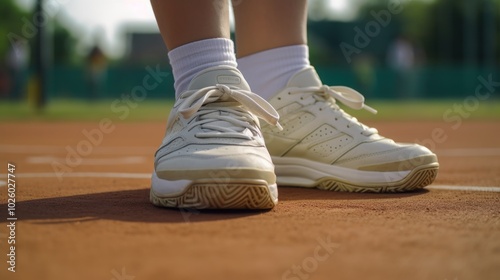 shoe, tennis, court, clay, sport, athletic, sneaker, footwear, white, sole, lace, ground, game, competition, player, playing, athlete, fitness, training, active, lifestyle, line, racket, ball, victory, team, match, sporty, energy, movement, motion, passion, sharpened, grit, determination, equipment, performance