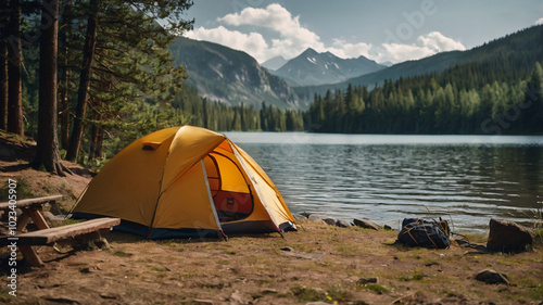 tent, camping, camp, nature, landscape, mountain, forest, summer, travel, adventure, tour tourism, hiking, sky, outdoors, tree, mountain, hike, equipment, leisure, grass, green, lake, campground, holiday maker