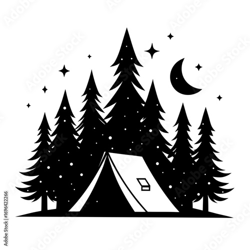 christmas, tree, winter, snow, vector, illustration, holiday, christmas, forest, landscape, tree, celebration, snowflake, card, cold, season, decoration, fir, pine, design, nature, scene, art, december, christmas tree, tent, silhouette, camping, travel, star, night, recreation, outdoors, wilderness, adventure, peaceful, graphic, sky, moon, serene, leisure, white