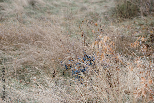 plant, grass, berry, bush, bush, fall, wood, landscape, nature, browse, blue, brown
