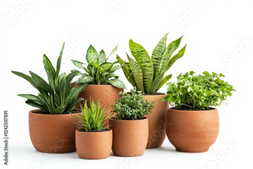 Terracotta Planters with Diverse Houseplants - A Collection of Indoor Greenery
