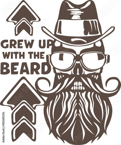 Tête de mort à moustache et barbe hipster skull moustachu et crane barbu lunette de soleil chapeau slogan