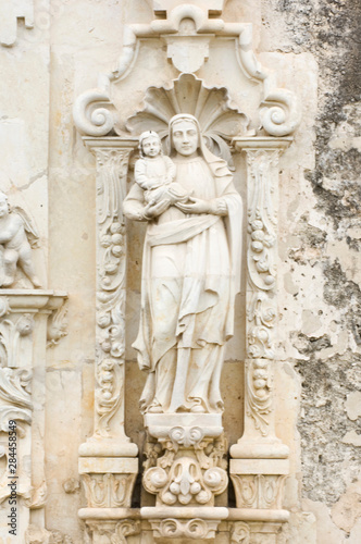 Texas, San Antonio, San Antonio Misisons NHP, Misison San Jose Y San Miguel de Aguayo, Staue of Saint Ann holding Virgin Mary as an Infant